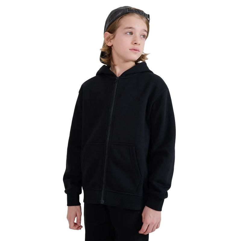 Properties: The 4F junior sweatshirt will be a fashionable addition to your child’s school outfits. The predominant cotton knit fabric provides warm comfort during autumn walks and winter days at school. Full-length zipper with a chin guard. Standard fit. Hood without adjustment. Integrated hood. Ribbed cuffs. 2 open side pockets. Fastened with a one-way zipper. Material: cotton, polyester Color: black