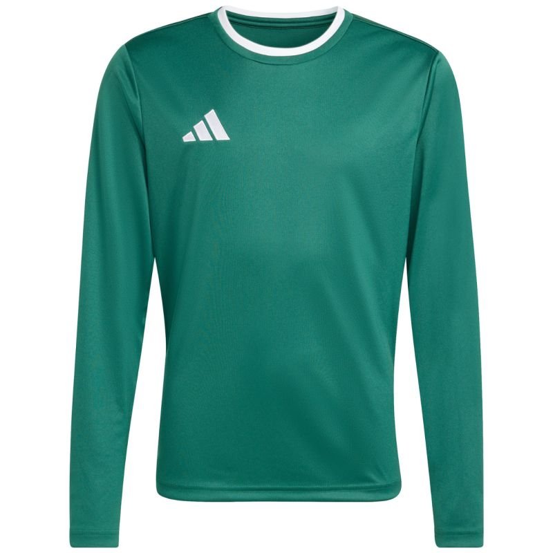 adidas Entrada 26 Long Sleeve Jersey for Kids, Green KF5873. This adidas long sleeve jersey for kids features a regular fit and hip-length cut. Made of comfortable interlock fabric. Climacool technology wicks sweat and promotes air circulation during intense activity. Embroidered adidas logo on the chest. Material: 100% recycled polyester.