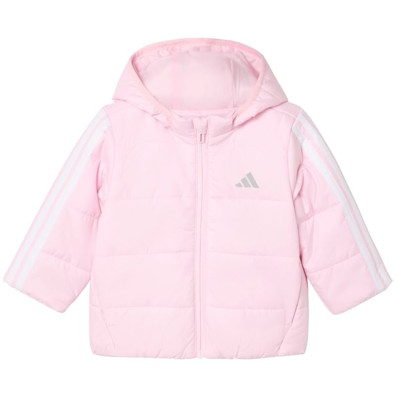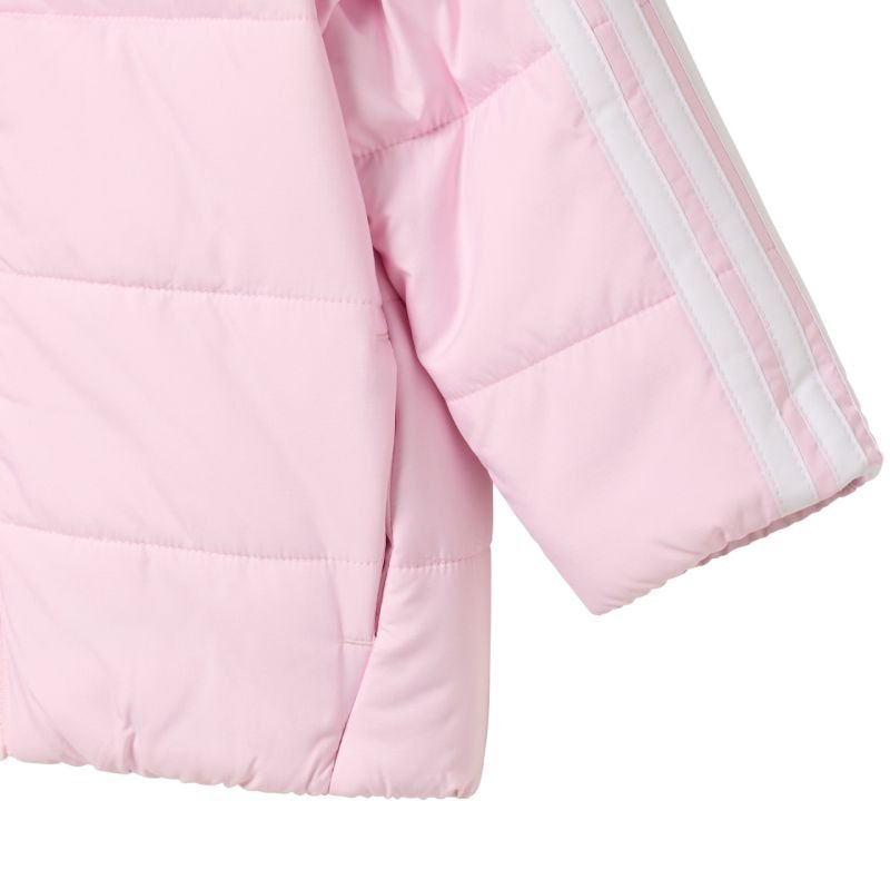 adidas Essentials 3-Stripes Jr JW2442 jacket Properties: adidas Essentials 3-Stripes Kids’ Jacket This adidas kids’ jacket is perfect for winter days. It features a standard fit. Horizontal synthetic fill combined with Climawarm technology keeps you warm while wicking away excess moisture. It features a full-length zipper. The hood is detachable and adjustable. Reflective details. Material: 100% recycled polyester.