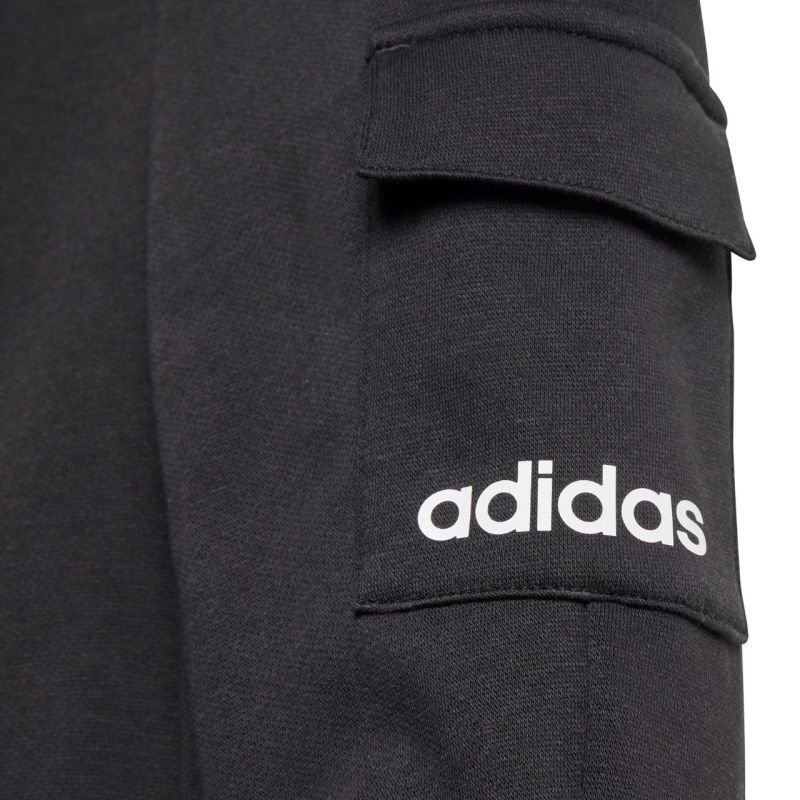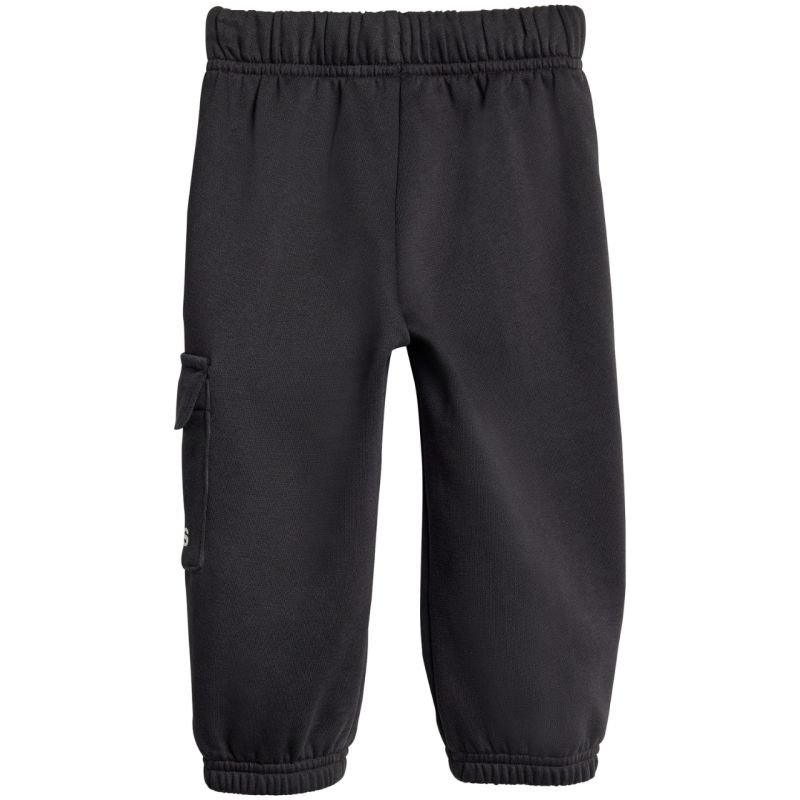 adidas Essentials Joggers Tracksuit for Kids, Black JC9745. This adidas tracksuit for kids is perfect for everyday wear. The sweatshirt and pants are made of cotton and polyester. The tracksuit is cut in a standard fit. Sweatshirts up to size 86 cm feature snap closures on the shoulder. The pants have an elastic waistband with a drawstring for adjustment. The legs are finished with elastic cuffs. Cargo pockets. Material: 70% cotton, 30% polyester