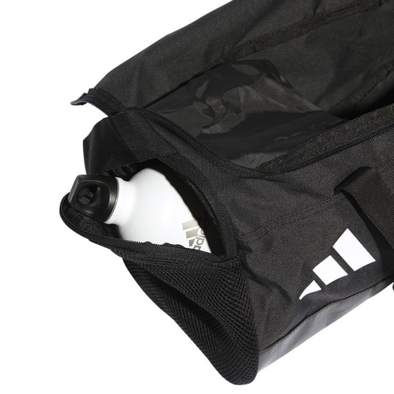 Properties: Adidas sports bag. Made of high-quality materials. Zippered outer compartments. Inside pockets. Bottom reinforced with waterproof material. Adjustable shoulder strap and handles. Material: synthetic Color: black