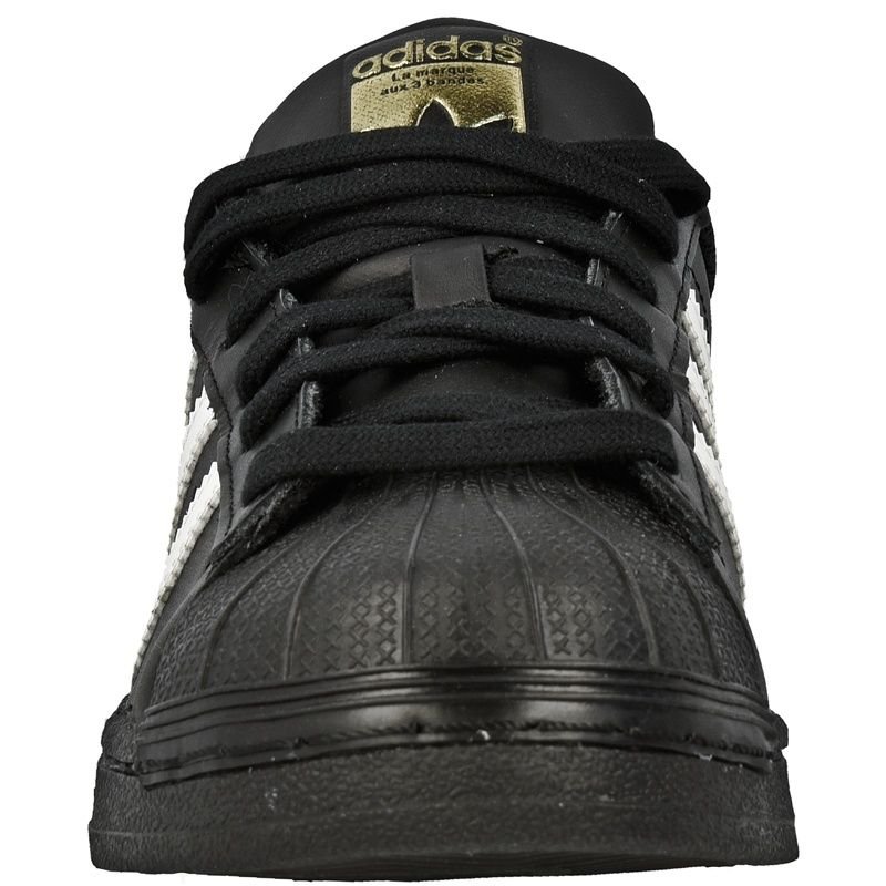 adidas ORIGINALS Superstar Foundation M shoes This model began its career as an indoor basketball shoe. These men’s shoes feature a coated leather upper in a classic style. They feature all the original details, from the zigzag-edged Three Stripes to the signature rubber shell toe. Properties: coated leather upper classic rubber shell-shaped toe cap breathable mesh lining rubber sole Material: natural leather – upper textile material – lining synthetic rubber – sole synthetic leather – upper elements Color: black