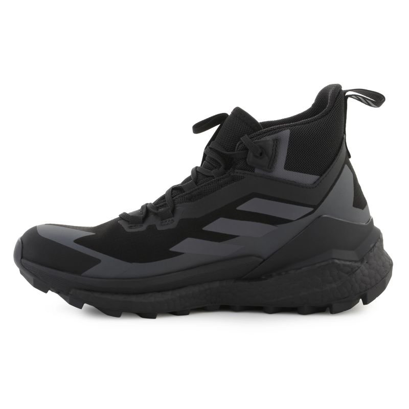 Adidas Terrex Free Hiker GORE-TEX Hiking Shoes 2.0 HQ8383 CBlack The adidas Terrex Free Hiker GORE-TEX 2.0 are modern trekking shoes designed for long hikes, comfort, and protection in challenging terrain. The high-cut mid-cut upper, made of durable synthetic materials, provides ankle stability and foot protection while hiking. The GORE-TEX membrane guarantees full waterproofness while maintaining breathability, making these shoes suitable for use in rain, snow, and wet conditions. BOOST technology in the midsole provides excellent cushioning, high energy return, and comfort even during long hikes. The Continental™ Rubber outsole offers excellent traction on wet, slippery, and rocky surfaces. The adidas Terrex Free Hiker 2.0 is the perfect blend of trekking shoes and the comfort of athletic footwear—a great choice for trekking, hiking, mountain trails, and outdoor activities.