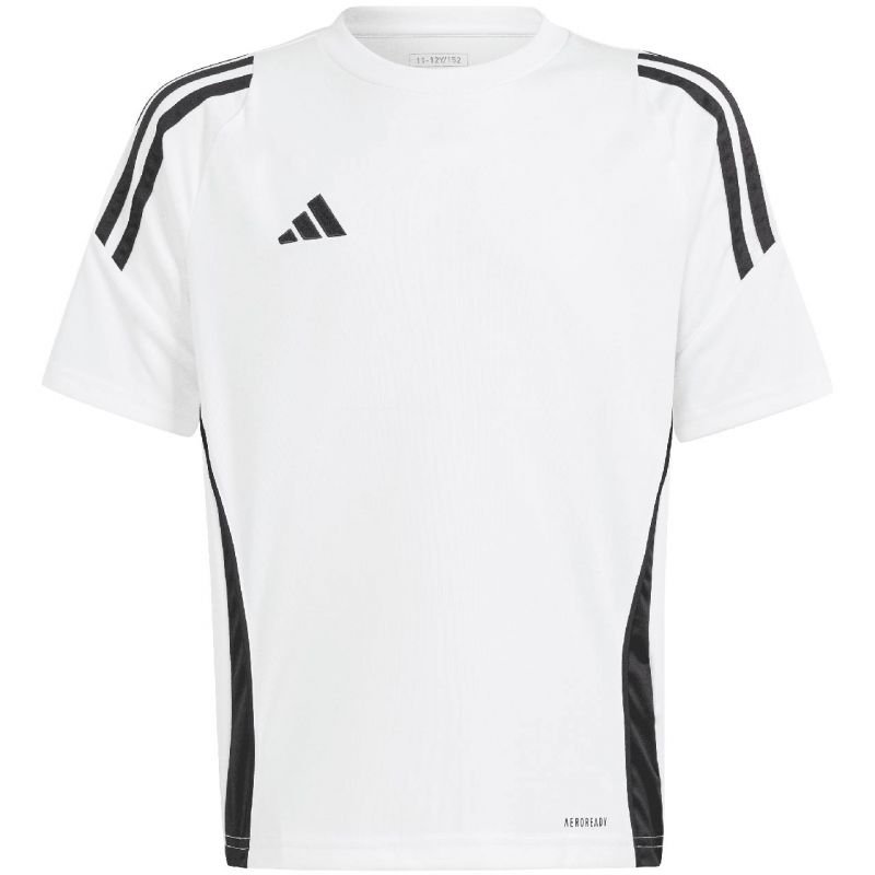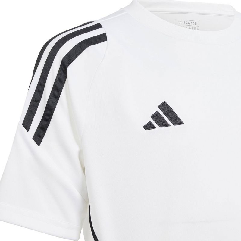 adidas Tiro 24 Jersey Jr Properties: adidas Tiro 24 Jersey for Kids This adidas kids’ T-shirt is perfect for football matches. Regular fit. Aeroready technology wicks away excess moisture. The fibers were created through a recycling process. Material: 100% recycled polyester Color: white, black