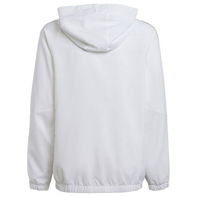 adidas Tiro 24 kids’ jacket white IM8799 Properties: The adidas Tiro 24 children’s windbreaker is perfect for training. The full-length zipper allows for quick dressing. The mesh lining supports the body’s ventilation process. Aeroready technology ensures dryness during product use. Two side pockets with zippers. Hood without adjustment. The outer coating will limit water absorption. Elastic trim at cuffs and hem. Material: 100% recycled polyester