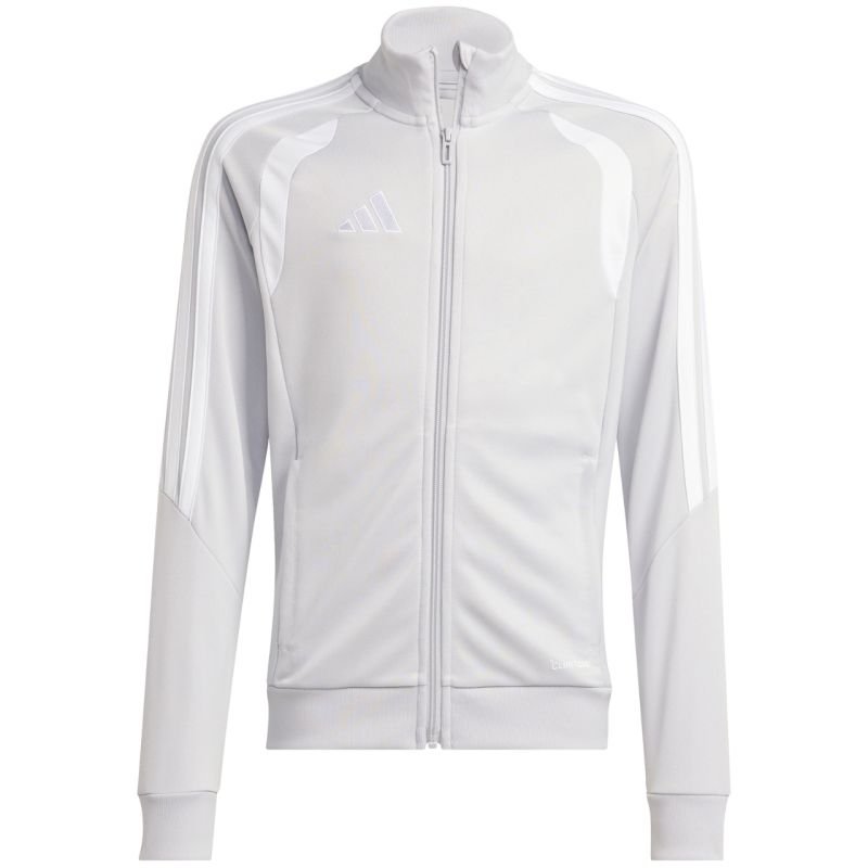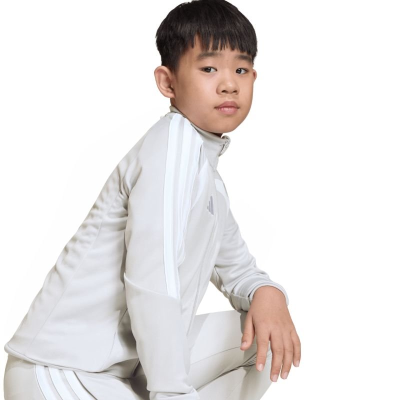 adidas Tiro 26 League Training Light Gray Kids’ Sweatshirt JY7198 This adidas football sweatshirt is perfect for training. Stand-up collar. Full-length zipper. Slim fit. Climacool technology wicks and disperses sweat. Stripes on the sleeves. Subtle logo. Quick-drying fibers. Material: 100% recycled polyester