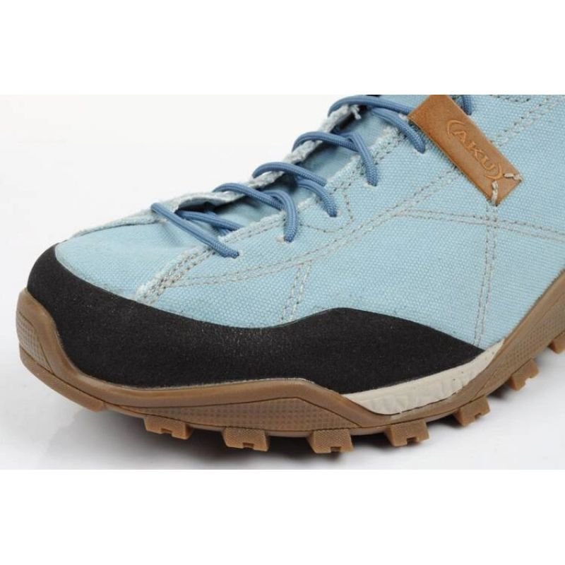 Aku Nativa Canvas W 647029 Hiking Shoes Properties: Women’s trekking shoes from Aku. Upper made of the highest quality fabric. Rubber inserts on the upper protect against abrasions. Vibram sole, made of a mixture of rubber and EVA material. The tread remains in constant contact with the ground, offering maximum comfort, safety and stability on wet surfaces. Classic lacing. The perfect footwear for any sporty outfit Color: blue