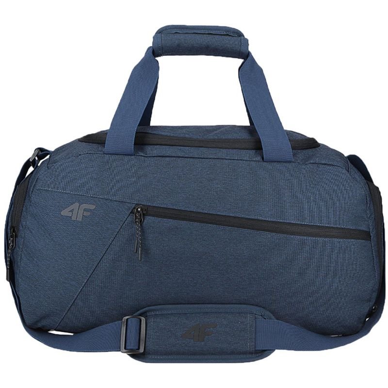 Bag 4F 4FAW23ABAGU052 31S Properties: 4F bag The 4F bag will allow active people to properly prepare for training. Reinforced bottom with protective rubber feet. The main compartment is fastened with a two-way U-shaped zipper. Adjustable shoulder strap with pad and double carry handle. Front zip pocket. Two side pockets. Technical data: · dimensions: 47x24x25 cm · capacity: 25 l Material: 100% polyester Color: navy