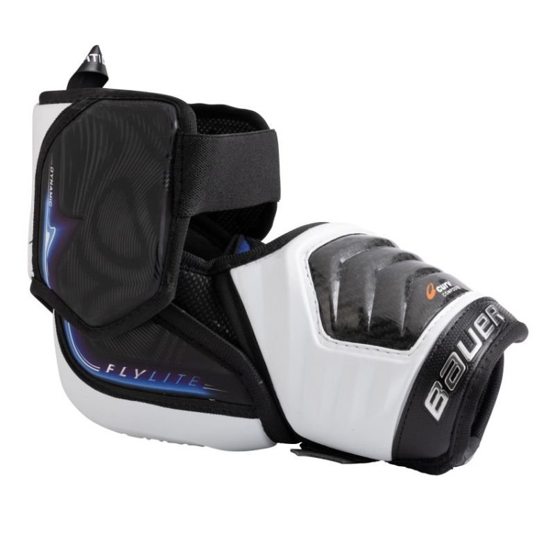 Bauer Flylite Sr. Hockey Elbow Pads Properties: Bauer Flylite Sr Hockey Elbow Pads The Bauer Flylite Sr Hockey Elbow Pads are the choice for players who prioritize agility, precision, and the highest level of protection. Designed for high-speed play, they offer full support in dynamic situations on the ice. Key Features: Unique Design: VAPOR FLYLITE elbow pads are designed for players who value agility—helping them react and adapt to play at full speed. With 360-degree forearm protection and a deep-fitting elbow pad, you can protect yourself from accidental impacts as you break through the defense. High-Quality Material: With a deeper-fitting elbow pad than the previous model, 360-degree wrapping, and a flexible DynaFlex strap system are designed to secure the pads in place. Top-of-the-line Protection: Play without limits. Premium Protective Materials: CURV® Composite in the forearm and DEFENSE CLOUD TECH foam in the elbow—provide advanced impact protection and enhanced durability while maintaining a lightweight feel. Moves with You: Designed to feel like part of the body, these guards feature an anatomical shape and a movable bicep section—helping you stay agile and fluid during every move, shot, and pass. Full Tech List: Cover: 3-Piece Anatomical with DCT Foam Liner. Forearm: 360-Degree with CURV® Composite and EXO-Lite Coating. Liner: THERMOCORE Zero. The Bauer Flylite Sr. hockey elbow pads are technologically advanced pads designed for players who demand mobility, reliable protection, and elite-level comfort.