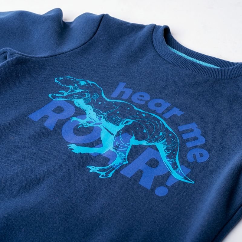 Properties: Boys’ Bejo sweatshirt. Slips on over the head. Loose fit. Ribbed cuffs on the sleeves and bottom of the sweatshirt. Material: cotton, polyester Color: blue