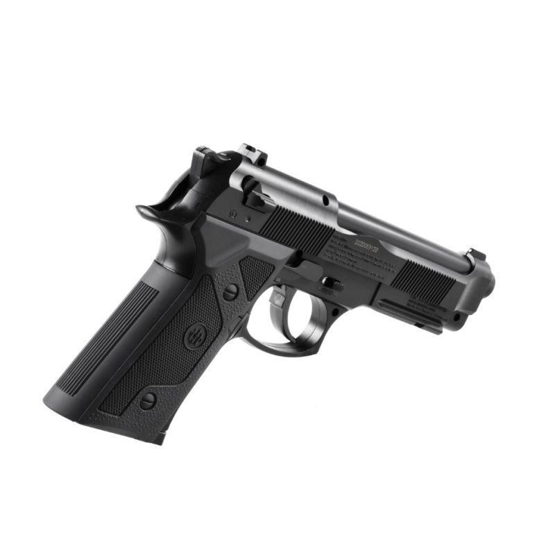 Technical Details Rifled barrel: Yes Muzzle energy: 2.8 J Airgun type: CO2 Power (cdm) Number of bullets: 18 Barrel type: Rifled Bed: Wooden Rail: 22 mm Shooting mode: Double Action Caliber: 4.5 mm Shot type: 4.46 mm steel ball BBs Fuse: Manual Maximum speed: 125 m/s Weight and dimensions Product length: 215 mm Product weight: 686 g Length (cm): 12.3 cm (barrel) Material Materials: Polymer Color Product color: Black Safety warning Warnings Store ammunition safely, avoiding contact with open flames. Keep out of reach of children. Do not aim at people or animals.