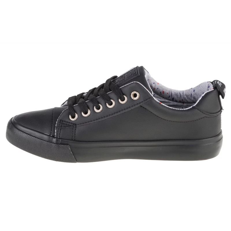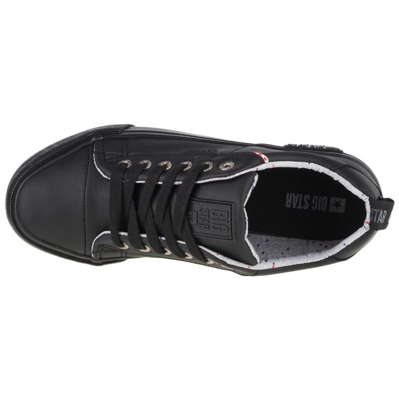 Properties: Big Star women’s shoes. Perfect for everyday use. Low, lace-up model. The manufacturer’s logo is visible on the tongue and on the side. The soft insole increases wearing comfort. A thick rubber sole ensures grip on the ground. Material: synthetic leather Color: black