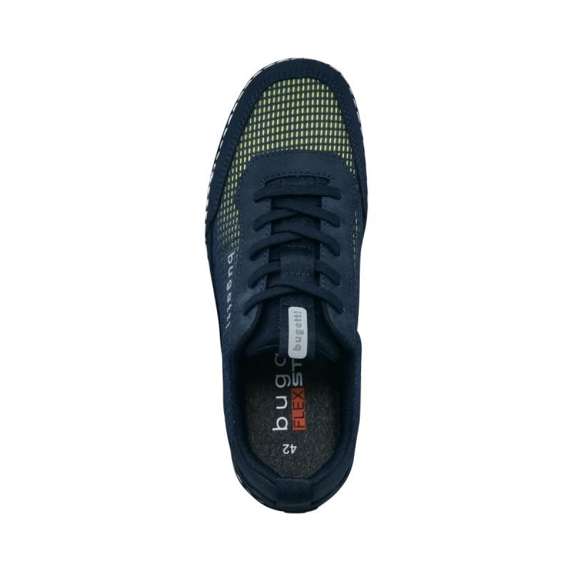 Bugatti M 321-ASG04 Shoes Properties: Showcasing a modern aesthetic, these men’s Glenans sneakers, designed with breathable textile, are a practical pair for your look, designed with comfortable elastic laces. Made from durable materials, these dark blue sneakers from Bugatti feature decorative stitching above the durable rubber sole, not only as a fashionable finishing touch but also to reinforce the shoe’s construction.