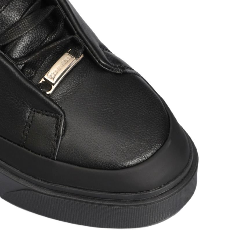 Properties: Women’s Calvin Klein ankle boots. Hell Cupsole Hi Top WL model. Higher, lace-up model. Leather upper. Thicker rubber sole. Black.