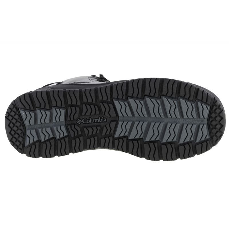 Properties: Men’s Columbia hiking boots. High, lace-up model. Thick rubber sole with tread. Material: leather, synthetic Color: black