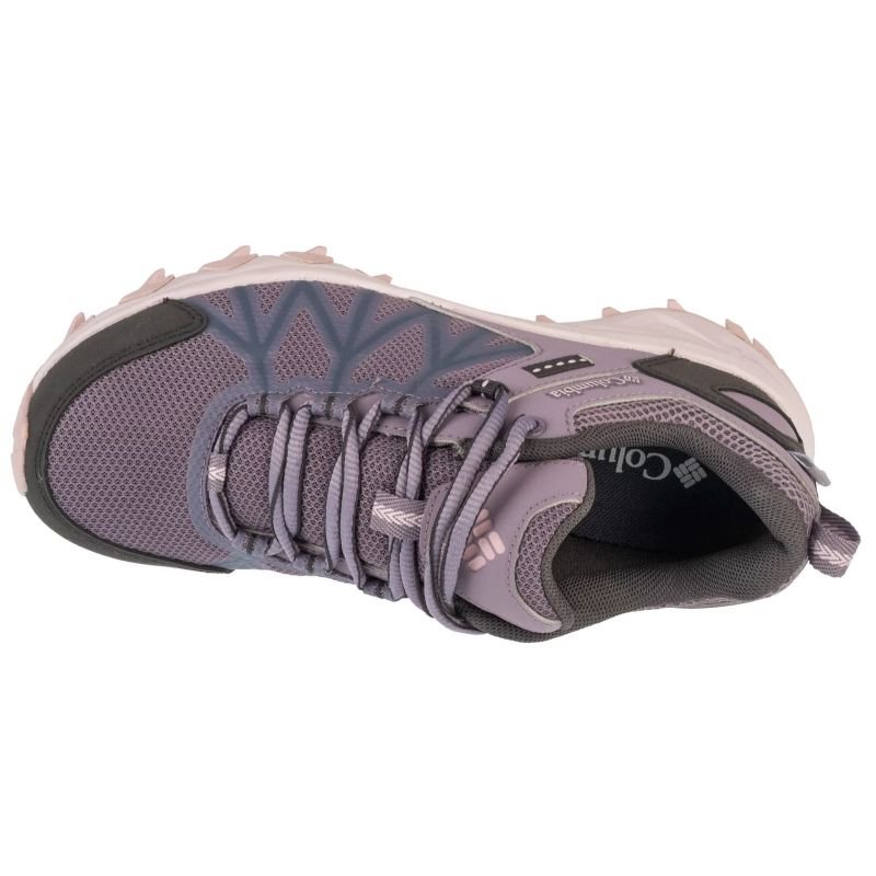 Properties: Women’s Columbia hiking boots. Low, lace-up model. Thicker, rubber sole with tread. Material: synthetic, fabric Color: purple