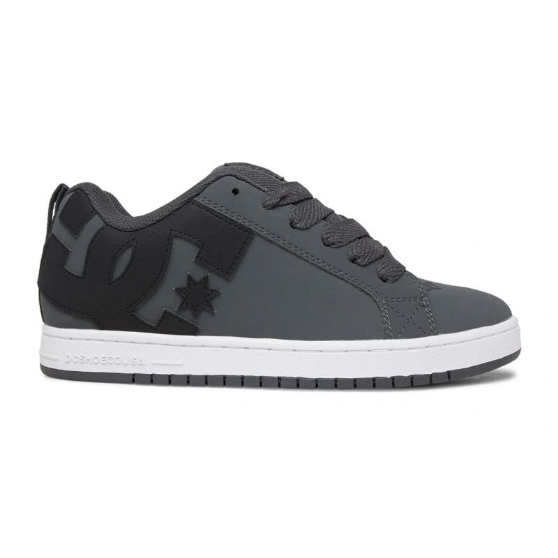 DC Shoes – Court Graffik 300529-GBW Gray The DC Shoes Court Graffik is an iconic skate sneaker , distinguished by its distinctive design and functional craftsmanship. The upper, crafted from genuine leather covered with synthetic materials and textiles, offers durability and a fashionable look, perfect for everyday urban styling. The DC logo on the side and detailed stitching underscore the streetwear appeal of the model and add character. The shoes feature classic laces for a custom fit and a cupsole construction for stability and protection while walking or skating. The Pill Pattern outsole offers good traction and durability on urban surfaces, while the lightly padded tongue and collar enhance comfort for all-day wear. The Court Graffik model will work perfectly both as skate shoes and as a casual streetwear piece, matching jeans, joggers or urban-style T-shirts.