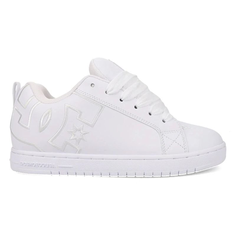 DC Shoes – Court Graffik DC01661112 White The DC Shoes Court Graffik is an iconic sneaker inspired by skateboarding culture , distinguished by its durable construction, comfortable fit, and classic design. The upper, crafted from durable nubuck and synthetic materials in a clean white colorway, offers a modern and versatile look, complementing both urban and casual styles. The padded tongue and collar provide comfortable support, while the classic lace closure ensures a precise fit. The interior of the shoes features a cushioned EVA insole for added comfort while walking, skating, or everyday use. The cupsole outsole with a patented Pill Pattern tread provides excellent traction and stability on a variety of surfaces, making it ideal for both skateboarding and city strolls. These sneakers are a great choice for those who value classic style and functional skateboarding.