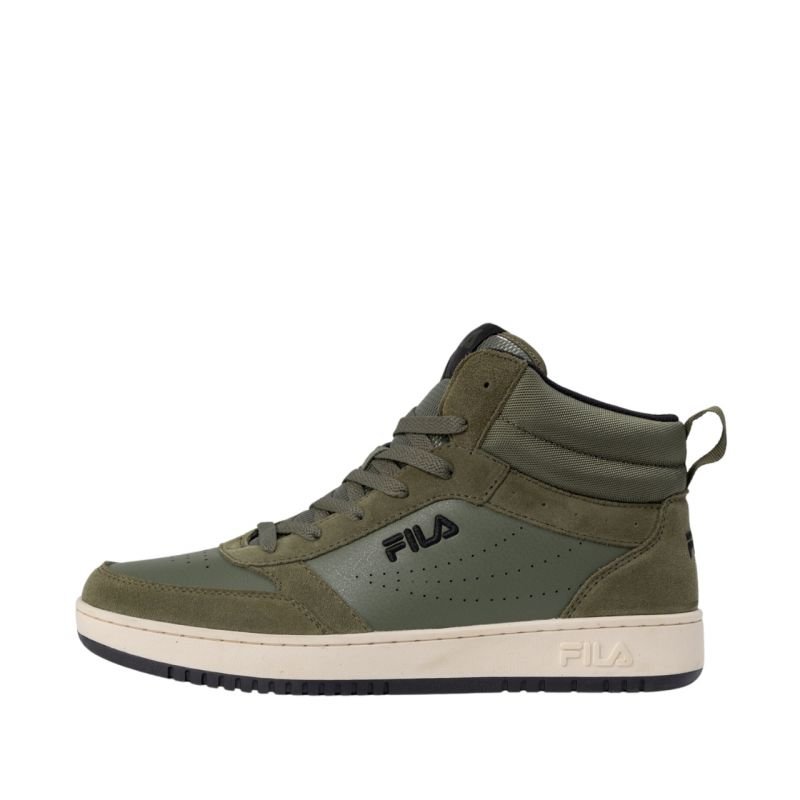 Fila Rega S mid men’s shoes olive FFM0367 60017 Properties: Fila men’s shoes will provide protection against the cold in the fall and winter. Elevated upper made of a combination of natural leather, synthetic leather and nylon mesh. Classic lacing. Softly padded collar. Textile interior. Handle on the back. Rubber outsole with specially formed tread. Logo located in several places.