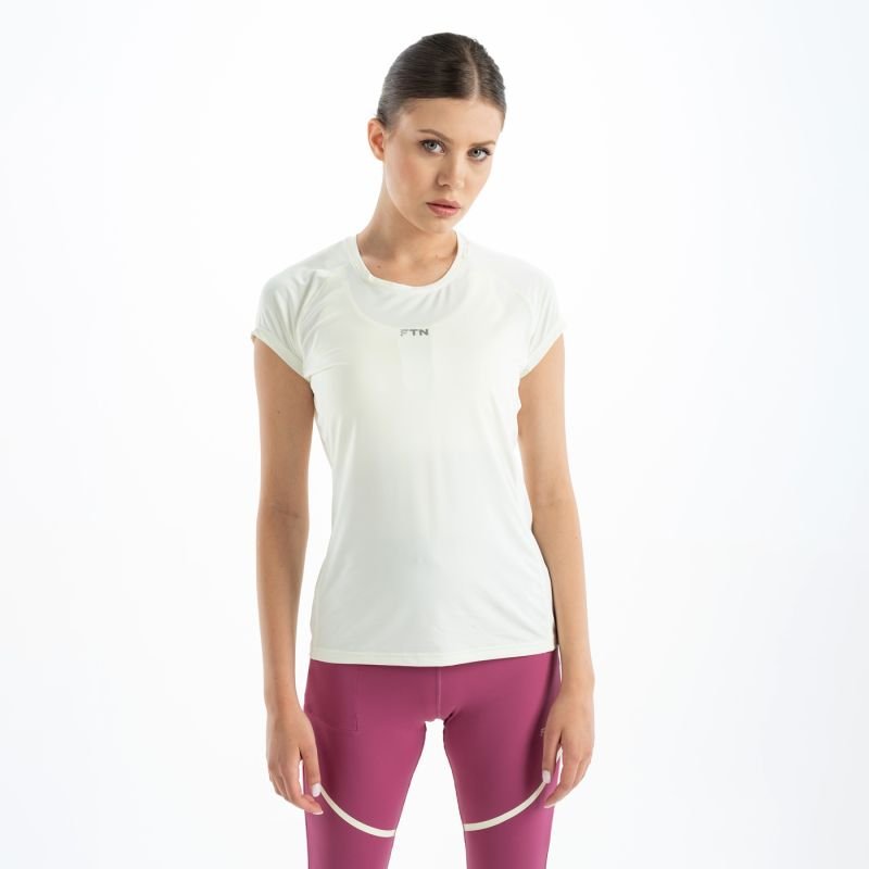 Fitanu Selina W T-shirt Properties: T-shirt for women has a fitted cut the T-shirt has a round neckline short sleeves delicate material reflective elements there is a graphic on the front Material: 90% NYLON, 10% ELASTANE 93 POLYESTER, 7% ELASTANE Color: white