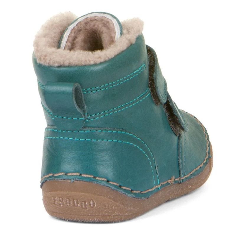 Froddo Jr winter boots with Velcro Properties: Children’s boots by Froddo Children’s winter boots provide warmth and comfort thanks to natural leather and a wool lining that protects against the cold. Insulated, fastened with Velcro. The non-slip sole and rubber toe cap increase safety. Material: natural leather, lining: wool Color: turquoise
