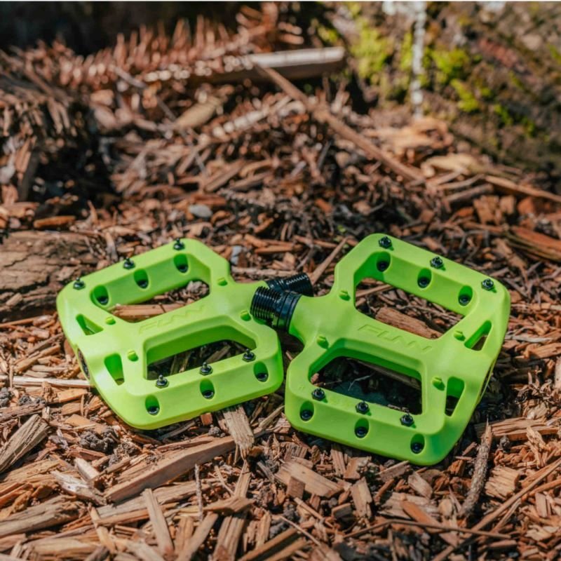 Taipan S Platform Pedals – Experience superior grip, tailored to smaller feet. Taipan S pedals offer the perfect blend of performance and size for riders with smaller feet. With a slightly reduced platform size, Taipan S pedals offer superior comfort and control underfoot, making them ideal for riders who need a more comfortable fit. With solid CrMo steel axles and a slim 14mm body, they offer durability while saving weight. The rounded pins align well with the shins, especially for younger riders, reducing the risk of shin injuries. Axle: CrMo with cartridge bearing and DU bushing Platform size: W 95 mm x L 80 mm x H 14 mm Q-factor: 52mm Weight: 325 g / pair Material: glass fiber reinforced thermoplastic Slimmer and lighter than our full-size Taipan, perfect for smaller feet, teens and older kids. 4 molded and 6 replaceable pins per side. Special rounded pin tips designed for shin safety Service kits and replacement pins available directly from FunnMTB