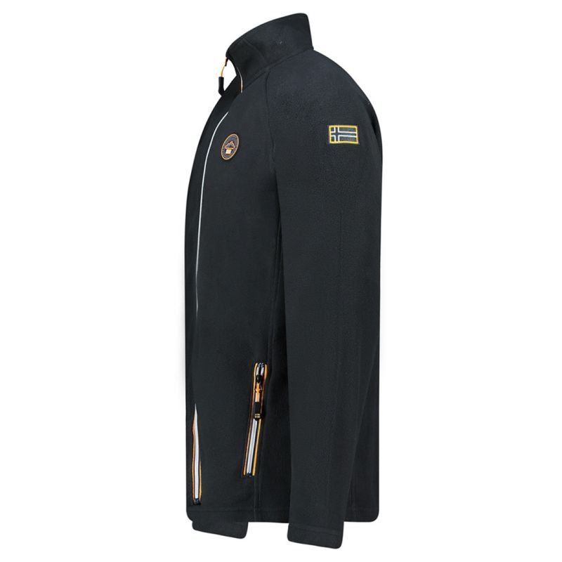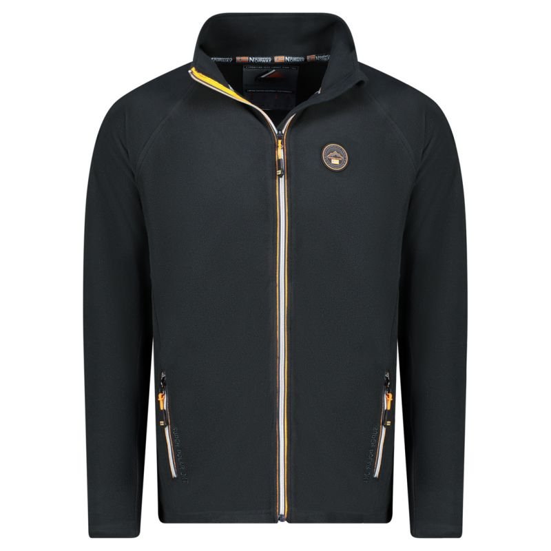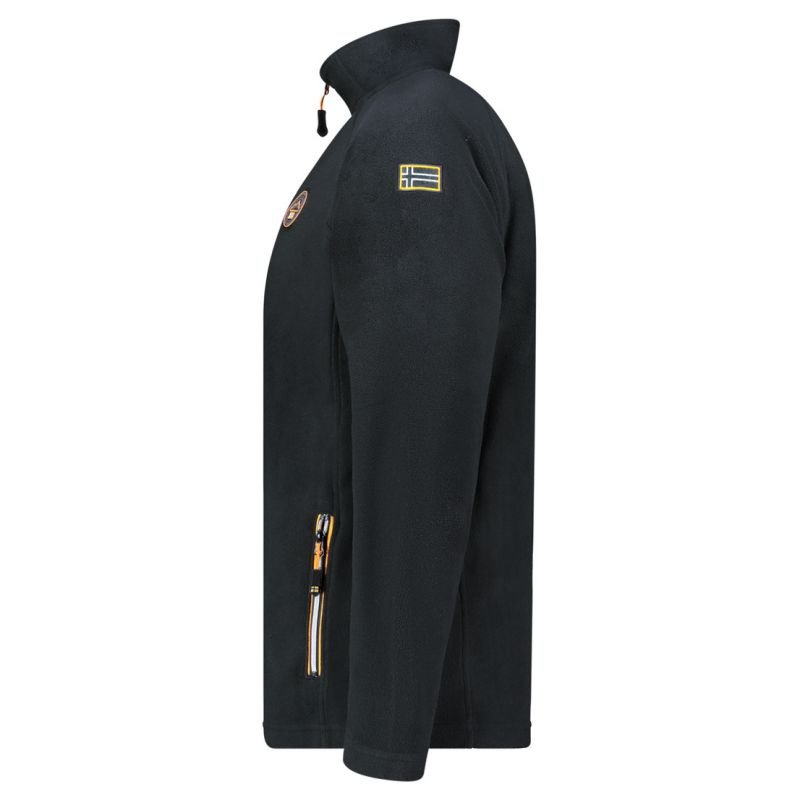 Properties: Product type: men’s fleece, fleece sweatshirt with zipper Color: black (BLACK DB) Material: 100% polyester – high-quality fleece Material weight: medium – perfect for autumn and winter Fastening: full zipper Cut: regular fit – fitted but not tight Hood: none – model without hood Pockets: 2 side pockets with zippers Details: embroidered Geographical Norway logo, patches and contrasting trims Properties: breathable, quick-drying, easy to care for