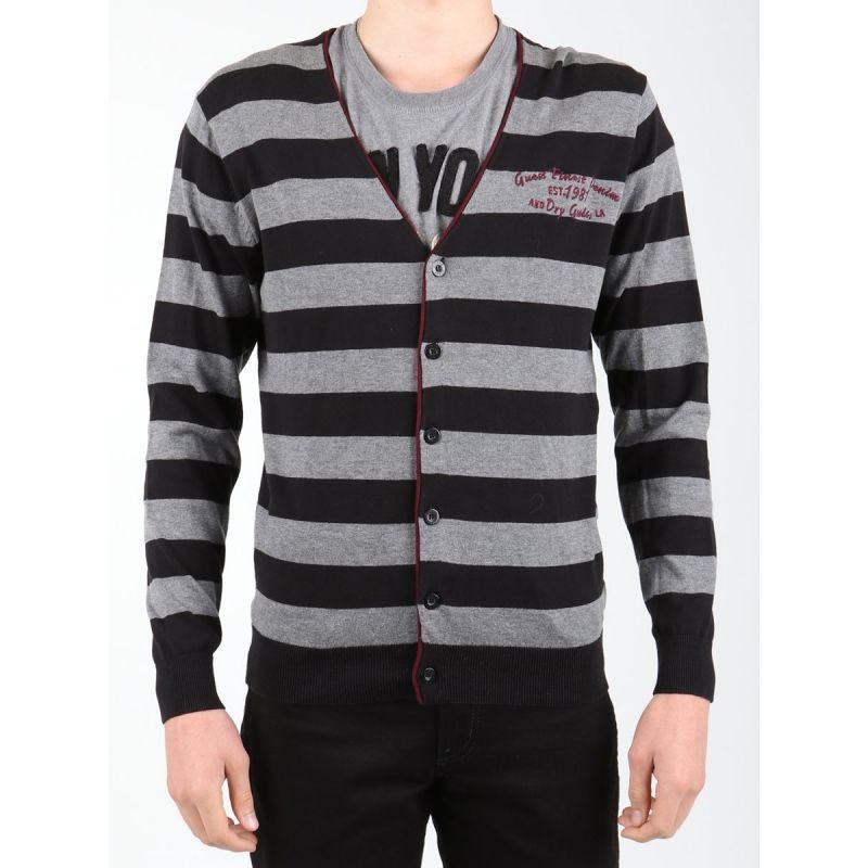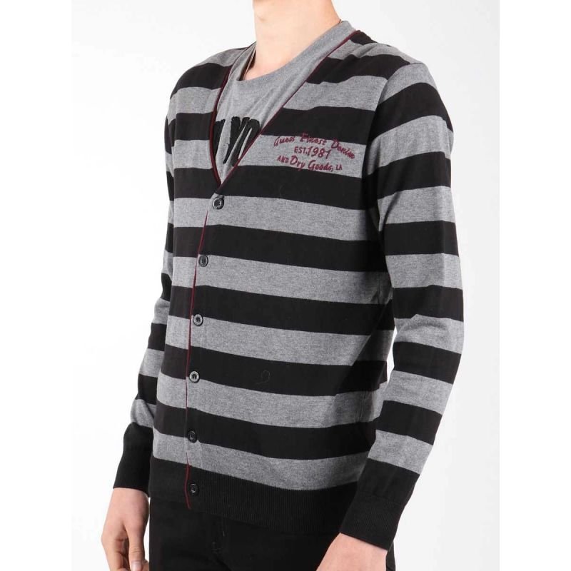 -Men’s sweater with long sleeves -The model is fastened with buttons -Color: black and gray stripes -Material: 100% cotton