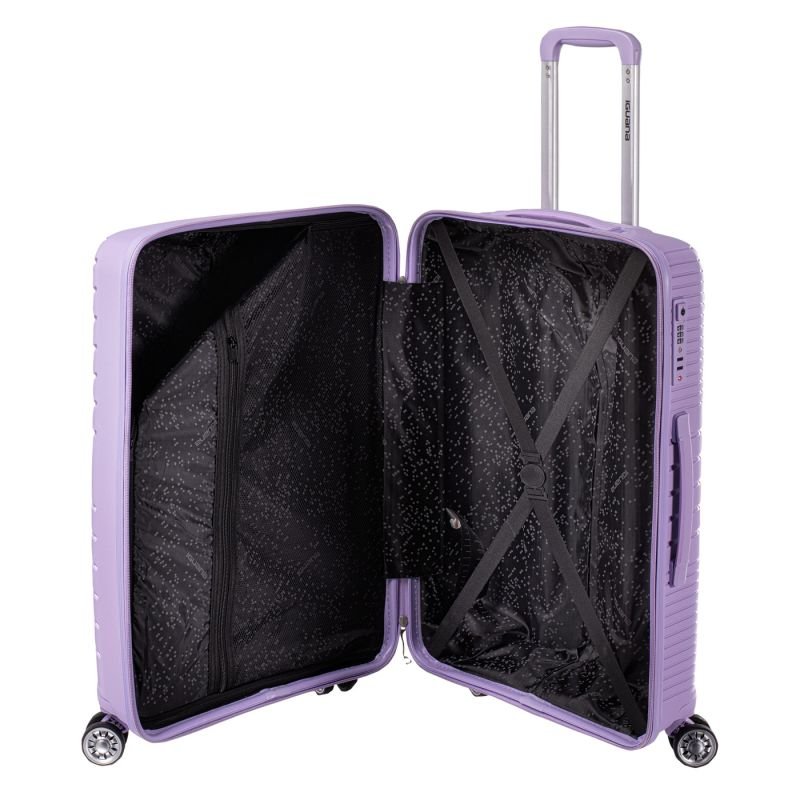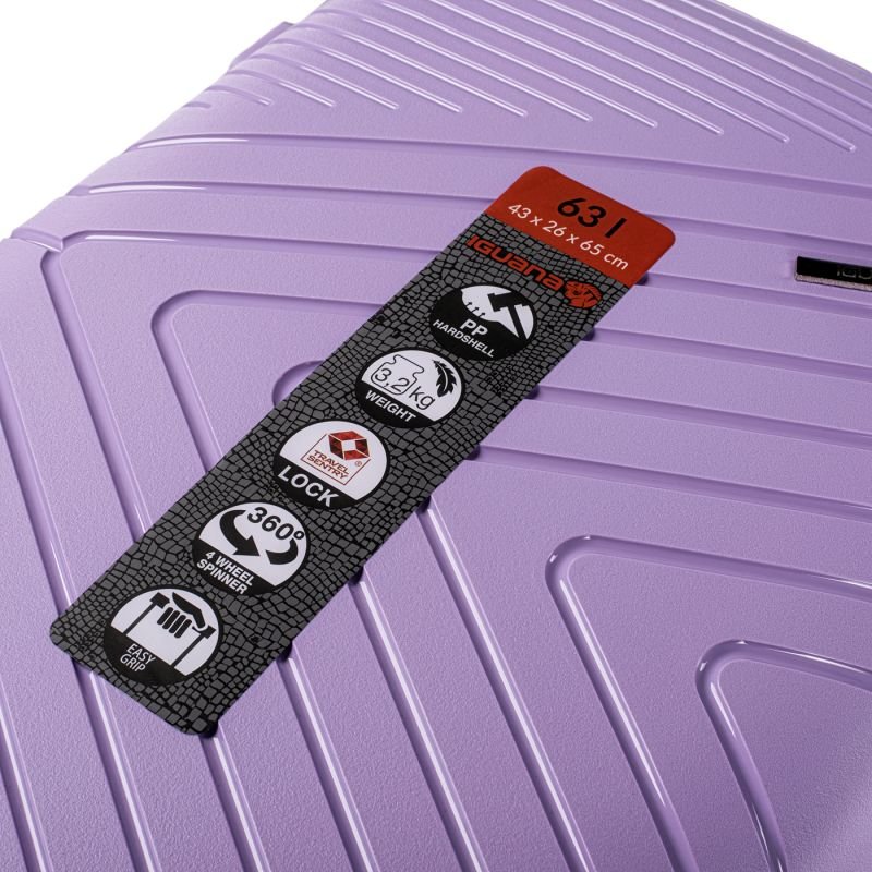 Iguana Cantabria II 63 Hard Case Properties: SUITCASE CAPACITY: 63 L DIMENSIONS: 65 x 43 x 26 cm WEIGHT: 3.2 kg MATERIAL COMPOSITION: 100% PP SPECIFICATIONS: – HARD SHELL – CODE LOCK – HAND LUGGAGE DIMENSIONS – WHEELS: 360° ROTATION RANGE – LIGHTWEIGHT – EASY GRIP TRAVEL SENTRY® APPROVED LOCK