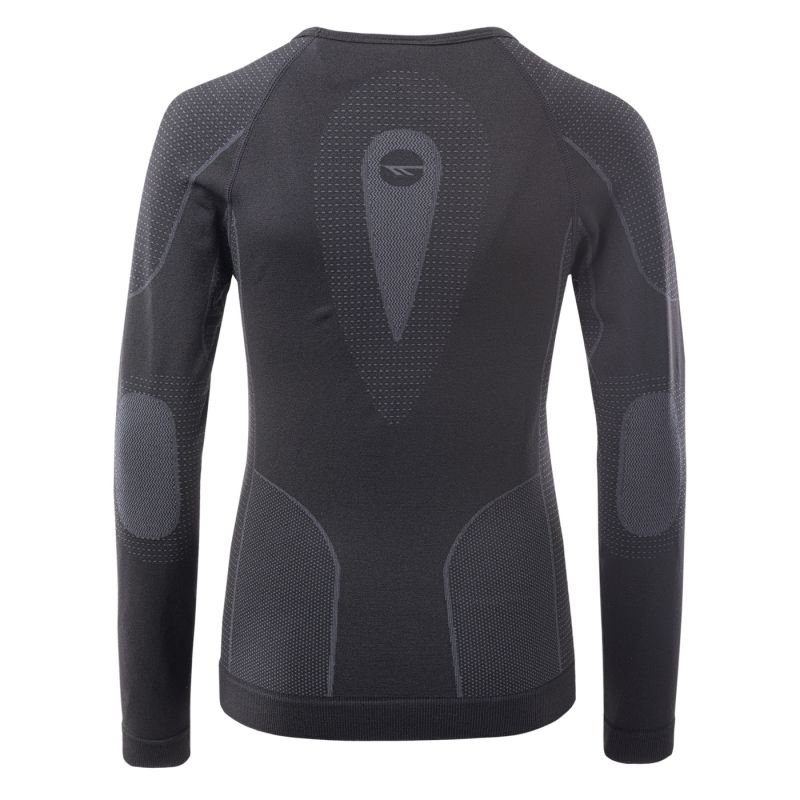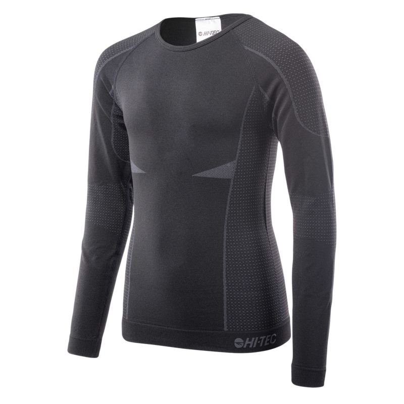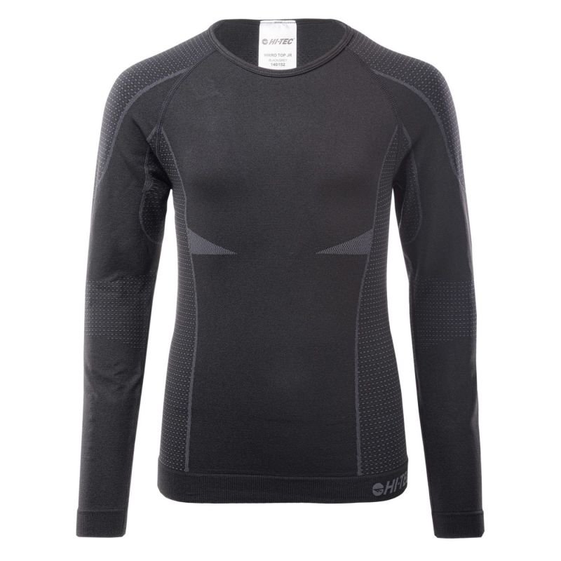 Properties: Children’s thermal shirt Hi-Tec. Long sleeve. Fitted cut. Seamless construction. Flexible material. Material: nylon, polyester, elastane Color: black