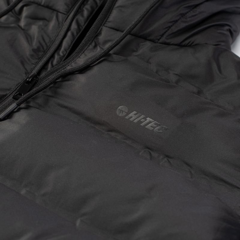 Diorro M Hi-Tec Quilted Winter Jacket Properties: The men’s DIORRO quilted jacket by Hi-Tec features a simple cut. A high collar and integrated, adjustable hood provide protection from gusts of wind. The synthetic fill provides thermal comfort and retains its properties when wet. The fill panels are welded rather than stitched, ensuring the fill stays in place. Additional features of the DIORRO model include inner sleeves , two side pockets, and an inner zipped pocket. Key features: Full-length zipper Integrated, adjustable hood Two side pockets Synthetic filling Inner pocket Technical specifications: Outer material: 100% polyester Lining: 100% polyester Filling: 100% polyester