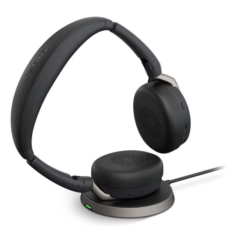 Technical details Easy pairing: Yes Total recycled content used in production: 75% Made from recycled materials: Yes Weight and dimensions Product height: 108 mm Product width: 200 mm Product weight: 136 g Product depth: 155 mm Working conditions Temperature range (storage): -10 – 55 °C Temperature range (operation): -5 – 45 °C Efficiency Number of paired devices remembered: 8 Clear Voice Technology: Yes Hearing protection technologies Jabra IntelliTone Jabra Safetone G616 Jabra PeakStop Jabra SafeTone Sidetone Technology Product type: Headset Control type: On-ear Works with Amazon Alexa: Yes Wearing style: Headband Foldable: Yes Control Type: Buttons LEDs: Yes Operating buttons Volume + Volume – Maximum number of simultaneously connected devices: 2 Headset type: Stereo Application: Office/Call Center Product color: Black Volume control: Button BeamForming: Yes Updates (OTA) : Yes HD Voice: Yes Auto connect: Yes Music playback: Yes Packaging data Package depth: 60.5 mm Package width: 225 mm Package height: 112 mm Package contents Wireless charging pad: Yes Wireless receiver interface: USB Type-A Quick Start Guide: Yes Cables: USB Type-C Quantity: 1 Suitcase: Yes Receiver Included: Yes Ports and interfaces Wireless router range: 30 m Connectivity method: Wired and wireless USB connection: Yes Bluetooth profiles AVRCP SSP Bluetooth version: 5.2 Bluetooth: Yes Frequency response (music mode): 20 – 20000 Hz Frequency response (talk mode): 150 – 6800 Hz Battery Charging time: 2 hours Battery type: Lithium-ion (Li-Ion) Talk time: 20 h Supported battery type: Built-in Rechargeable battery: Yes Battery capacity: 450 mAh Charging source: USB Wireless charging: Yes Battery powered: Yes Music playback time: 32 h Continuous audio playback time (without ANC): 32 h Continuous audio playback time (with ANC): 21 h Talk time (ANC off): 20 h Talk time (ANC on): 15 h Other functions Call Management: Y Supported apps: Jabra Sound+, Jabra Direct, Jabra Xpress Digital Signal Processing (DSP): Yes Voice prompt languages Korean French German Japanese Microphone Microphone mute: Yes Foldable microphone: Yes Microphone type: Boom Number of built-in microphones: 6 Microphone sensitivity: -38 dB Microphone frequency: 20 – 10000 Hz Hybrid noise reduction: Yes MEMS (Micro-Electro-Mechanical System) microphone: Yes Headphones HearThrough: Yes Noise reduction type: Hybrid Frequency response: 20 – 20000 Hz Maximum input power: 30 mW Impedance: 16 Ω Headphone construction: Over-ear Speaker diameter: 2.8 cm Supplier Features Materials Stainless steel Polycarbonate (PC) Artificial leather Acrylonitrile-butadiene-styrene copolymer (ABS) Music player Supported audio formats AAC SBC Sustainable development Environmental (sustainability) certification: TCO
