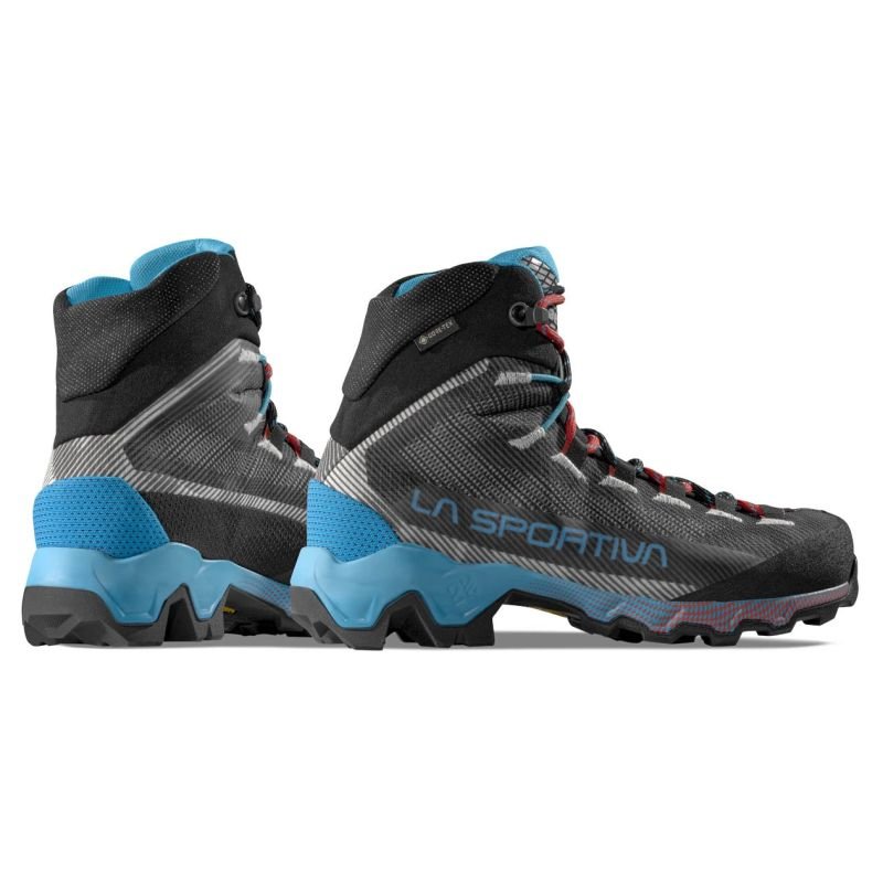 La Sportiva Aequilibrium Hike Woman GTX Carbon/Malib The La Sportiva Aequilibrium Hike Woman GTX Carbon/Malibu Blue is a women’s trekking shoe that combines comfort, lightweight construction, and protection. The upper, made of abrasion-resistant synthetic fabric with a water-repellent finish, provides protection against moisture and abrasion, while the Gore-Tex Extended Comfort membrane protects feet from rain while maintaining breathability. The 3D Flex System Evo™ allows for natural ankle movement and adapts to uneven terrain while providing adequate support. The Double Heel™ heel construction improves braking on descents and allows for a smoother roll, resulting in less fatigue on long hikes. The Vibram SpringLug Tech sole with Impact Brake System tread provides reliable traction on a variety of surfaces—rocks, dirt, and wet rocks. Polyurethane foam in the midsole, along with an abrasion-resistant TPU film, improve cushioning and durability. The 5 mm footbed of the Mountain Hiking boots ensures softness and comfort even after long hours of walking. Each pair weighs approximately 480 g, making them relatively lightweight for a high-top trekking shoe.