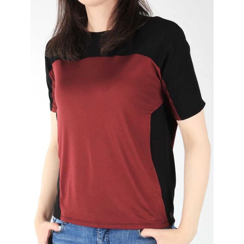 Women’s t-shirt in black and burgundy. Simple, classic design. Short sleeves. Material: 100% viscose