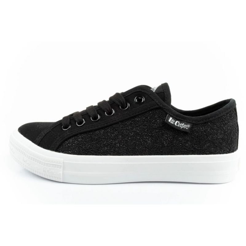 Properties: Product name : Lee Cooper women’s sneakers, product code LCW-25-31-3421L Brand : Lee Cooper Shoe type : Sneakers Color : Black, with glitter Upper material : Textile materials, ensuring durability and flexibility Interior : Textile, ensuring high comfort of use Sole : High-quality material, light and durable Comfort : Provides freedom of movement Application: Perfect for styling. Additional features: Light, comfortable, durable The upper is made of the highest quality textile materials. The interior is made of textile material and ensures high comfort of use. The shiny upper adds charm to the shoes. Durable, rubber and anti-slip outsole.