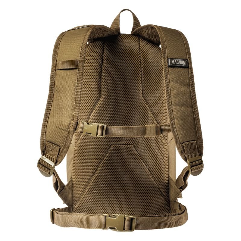The Magnum Kamel backpack by Magnum has a spacious main compartment in which you can pack all your necessary things. The presented model has an additional pocket on the front for smaller items. Magnum Kamel has a Molle system that allows you to attach additional equipment to the outside of the backpack. Soft, padded shoulder straps and a mesh back panel increase comfort. Properties: Capacity: 15l Size: 45 x 21 x 17 cm Weight: 0.5 kg H2O System Molle System Chest strap Pocket on the front Spacious main pocket Carrying handle Adjustable, soft shoulder straps Possibility of attaching other patches Material composition: 100% polyester