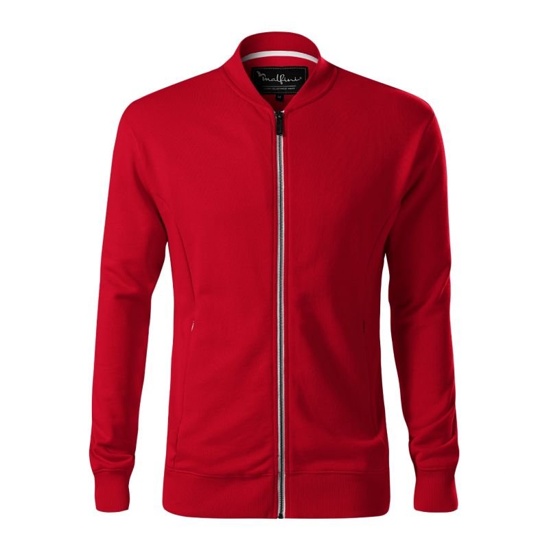 Malfini Bomber M MLI-45371 sweatshirt Properties: straight cut with side parts full-length metal zipper zipper with engraved logo bomber collar inner back part of the hem reinforced with tape pockets in the dividing seams with a hidden zipper bottom hem and sleeve cuffs Material: cotton Color: red