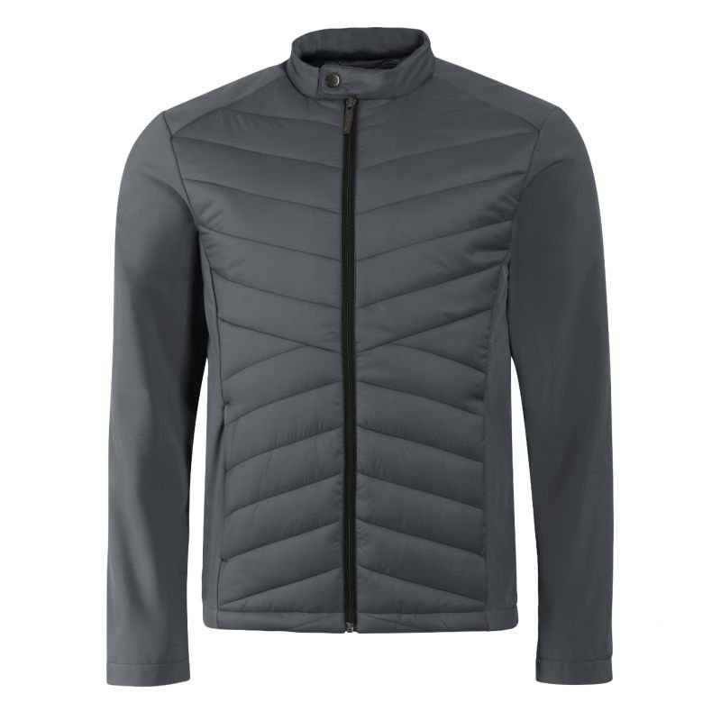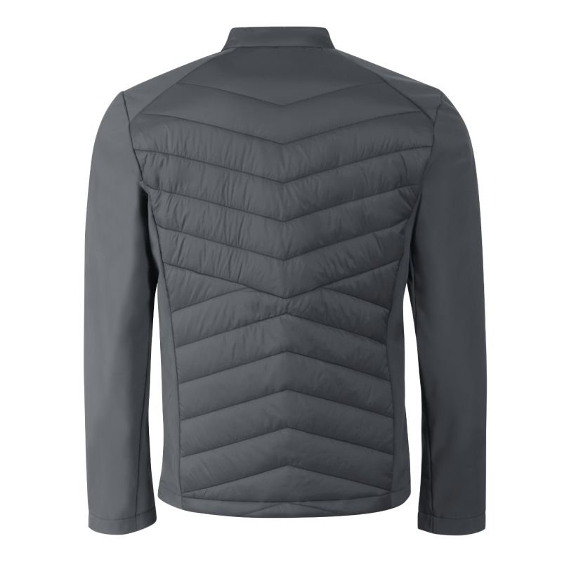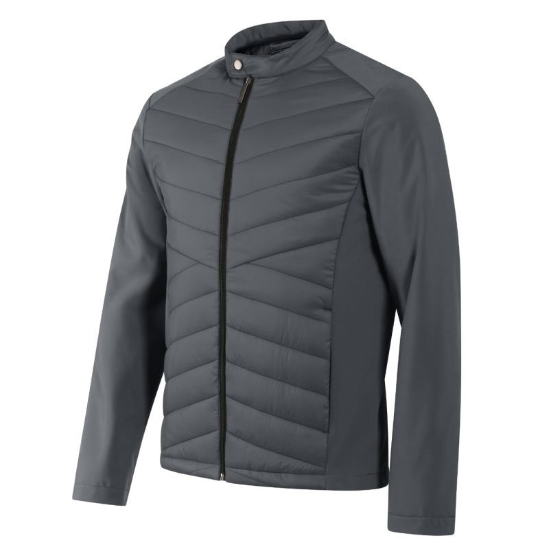 Malfini Premium Cross M Hybrid Jacket Properties: Men’s hybrid jacket by Malfini Premium Plain weave: water-resistant finish a combination of quilted and softshell fabric, cut with side parts, stand-up collar with snap fastener, full-length spiral zipper, side pockets with zipper, internal zip pocket, access to branding in the rear part Weight 250g/m² Material: 100% polyamide, filling: 100% polyester Softshell: 90% polyester, 10% elastane, waterproof finish Lining: 100% polyester Color: graphite