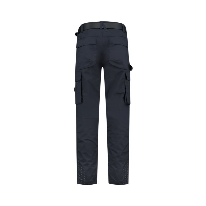 Malfini Work Pants Twill Cordura Properties: Unisex trousers with elastic waistband, multi-functional pockets, reflective elements, knees reinforced with highly durable CORDURA® material, leg lengthening option, fits T90 knee pads, sizes 45, 47, 49, 51, 53, 55 are extended, belt not included, Tricorp product code: 502021 Material: Twill, 65% polyester, 35% cotton CORDURA® 100% polyamide Color: navy