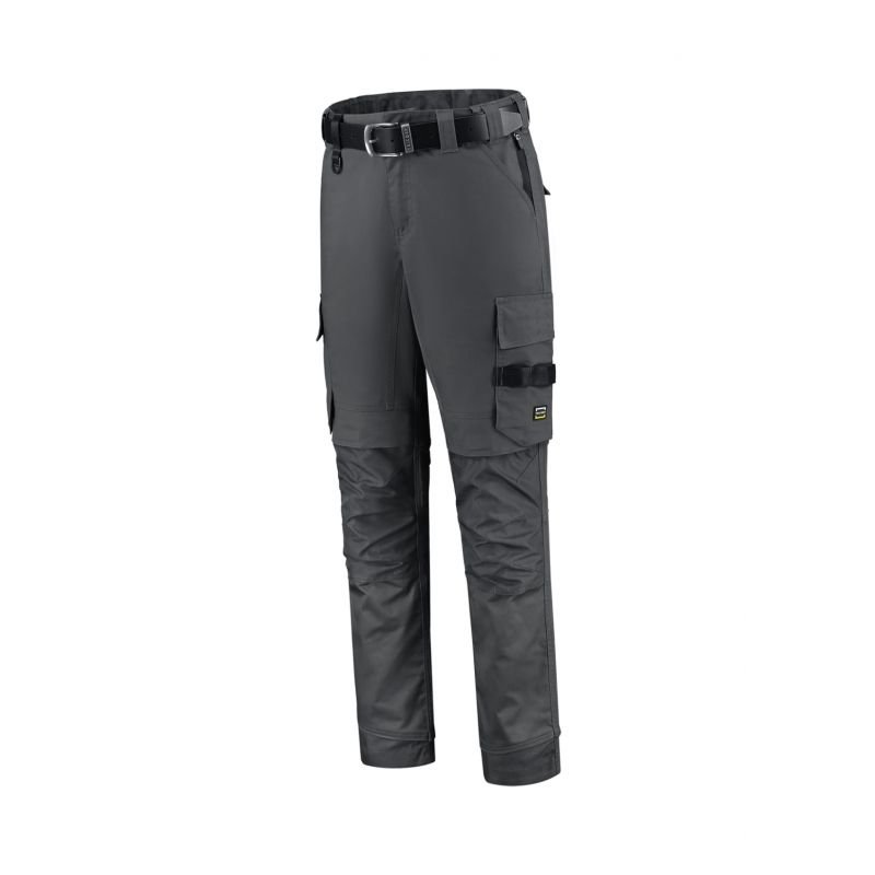 Malfini Work Pants Twill Cordura Stretch Properties: Unisex trousers with elastic waistband, multi-functional pockets, “D” pendant, reflective elements, CORDURA® in the knee part, leg extension possible, fits T90 knee pads, sizes 45, 47, 49, 51, 53, 55 are extended, belt not included, Tricorp product code: 502020 Material: Twill: 65% polyester, 35% cotton CORDURA®: 91% polyamide, 9% Color: dark gray