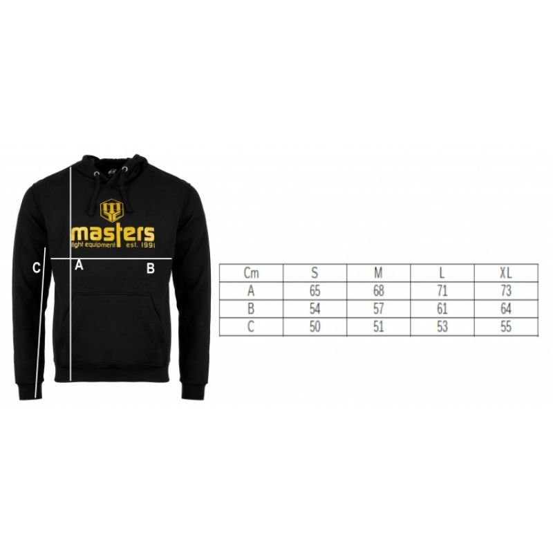 Properties: Men’s sports sweatshirt from the BASIC collection. Equipped with a kangaroo pocket and elastic cuffs and waist. Model: MASTERS BASIC men’s cotton sweatshirt Color: black with gold print Size: S-XL Material: 50% polyester, 50% cotton