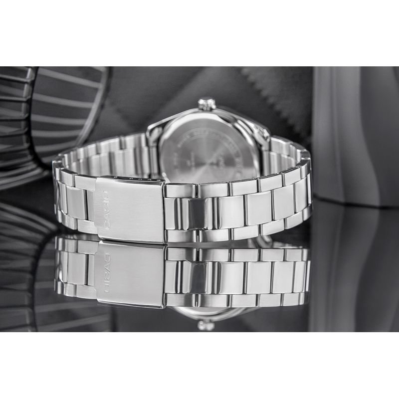 Casio MTP-1302PD-9AVEF Men’s Watch + BOX The Casio MTP-1302PD-9AVEF Men’s Watch is a classic timepiece that combines elegance with simplicity, perfectly complementing the style of the modern man who values refined design and reliability. This model features an elegant, gold dial with a subtle sheen, contrasting with the solid silver stainless steel bracelet, giving it a unique character. Product description: Brand : Casio Symbol : MTP-1302PD-9AVEF Model : Classic Mechanism : Quartz Dial: Analog Case : Stainless steel Glass : Mineral Backlight: Nerobite tips Bracelet: Stainless steel Water resistance: 50M Anti-allergic : Yes – nickel-free Dimensions in mm: Envelope: 38 Shield: 32 Thickness: 10 Strap: width: 20 Circumference: max 210 Color: Case : silver Shield : gold Indexes: silver Hands: silver filled with fluorescence Bracelet: silver A COMBINATION OF CLASSICS WITH REFINED COLORS This model belongs to the Casio Classic collection, characterized by elegant, simple designs that emphasize timeless style. The silver case beautifully complements the gold dial, creating a timeless contrast perfect for both formal and casual outfits. The subtle shimmer of the silver indices and hands, which are additionally coated with a fluorescent coating, ensures excellent readability even in low light. A solid silver stainless steel bracelet completes the look, adding elegance and comfort to the watch. This harmonious selection of colors and details makes the MTP-1302PD-9AVEF the perfect blend of classic and contemporary style. MINERAL GLASS – OPTIMAL PROTECTION AND CLEAR DIAL The crystal used in this watch is made of silicate mineral glass, which is harder than synthetic glass. This effectively protects the dial from scratches, damage, and dirt. Furthermore, mineral glass is flexible, making it less susceptible to cracks and shattering. It also provides excellent clarity and brightness, significantly facilitating quick and clear reading of the time in various lighting conditions. QUARTZ MOVEMENT – accuracy and reliability High timekeeping accuracy thanks to the use of a quartz crystal allows you to effortlessly plan your day. Furthermore, intuitive operation means you don’t have to worry about complicated winding or time setting, increasing convenience. Replacing the battery is the only regular maintenance required when using a quartz watch. It’s the perfect choice for busy men who value comfort and simplicity. SUPPORT IN DAILY ORGANIZATION A discreet date window allows for quick access to the current date without the need for a phone or additional device. Subtly integrated into the watch face, it perfectly complements its unique style, while automatic date change at midnight ensures the information is always up to date. NEROBITE COATING The hands are coated with Neobrite, which allows them to glow in the dark when exposed to light, making it easier to read the time in low-light conditions. Neobrite technology requires no battery power because it works by absorbing and emitting light. WATER RESISTANCE 50 M It offers the protection and reliability essential for everyday situations. Water resistance to 50 meters is a feature that, while not ideal for professional diving, offers a number of benefits for everyday use. This watch is water-resistant enough to withstand many common everyday situations, such as sudden rainfall or contact with water while washing hands. COMFORTABLE BRACELET Crafted from high-quality stainless steel, with a dual finish: a matte center and brushed edges, it gives the watch a unique look. Stainless steel is a material resistant to mechanical damage, ensuring the bracelet withstands daily wear and maintains its aesthetic appeal for years to come. The watch is equipped with a special slide clasp that allows for adjustment of the bracelet’s length without the need to remove any links. The bracelet features a sturdy, snap-lock clasp that prevents accidental opening, which is especially important during active situations or intense wrist movements. THE SET INCLUDES: Casio MTP-1302PD-9AVEF watch Original Casio Box User manual + warranty card CASIO WATCH – TIME AT ITS BEST The Casio brand is a legend that began in the 1970s, when the world was introduced to the first innovative electronic watches, redefining the way we think about time. Since then, Casio has continually set new standards in quality, precision, and technology, creating models that stand the test of time—both in style and durability. Every Casio watch, from the classic G-Shock to elegant, minimalist models, is a symbol of reliability you can rely on in every situation. Thanks to exceptional attention to detail and rigorous durability testing, Casio offers timepieces that have earned the title “watches for generations.” It’s a brand trusted by millions of people around the world, from globetrotters and athletes to those seeking everyday elegance. Casio isn’t just a watch—it’s durability, innovation, and history etched into every second.