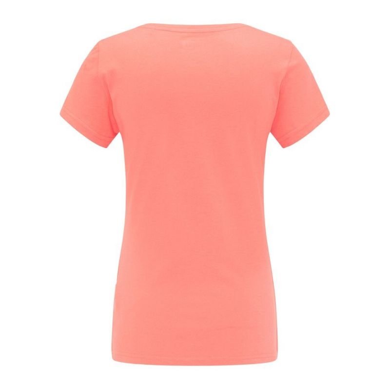 Properties: Women’s Mustang T-shirt. Short sleeves. Classic round neckline. Cut: slim fit. Large print on the front. Material: 100% cotton Color: pink