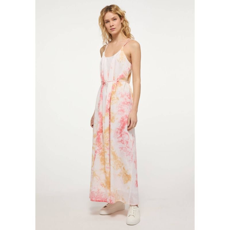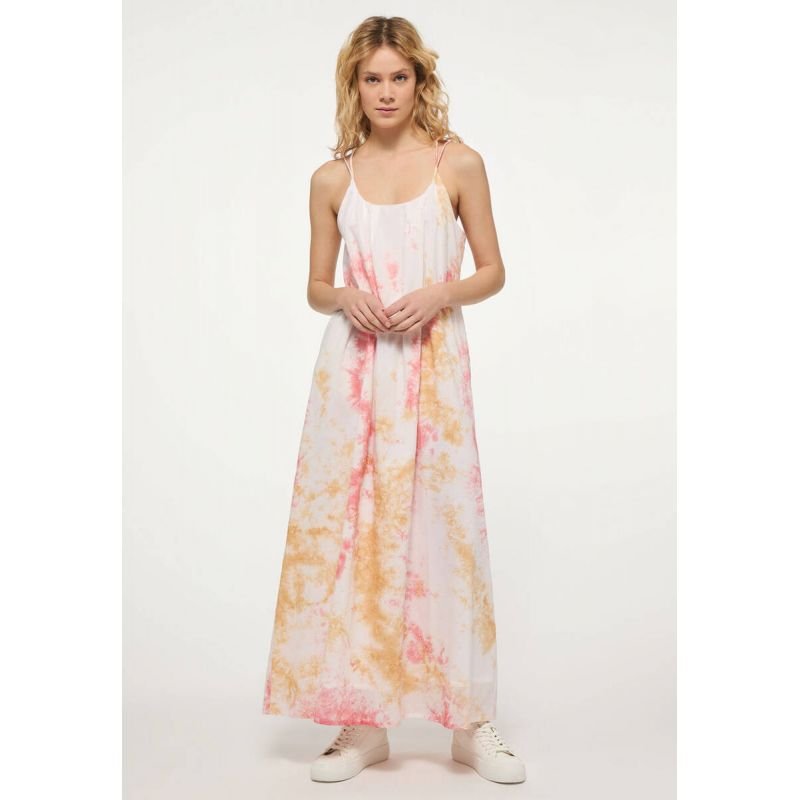 Properties: This Mustang dress impresses at first glance with its gorgeous retro look. Made of soft cotton, it is breathable and lightweight, and thanks to the practical tie belt, the width can be individually adjusted. The V-neckline, spaghetti straps and tie-dye pattern give the piece a romantic feel. The model is 177 cm tall and wears size 36 Cut: A-line, width varying towards the hem. Loose dress Pure cotton V-neck tie strap Tie dye project Material weight: 60.00 g/m2 Material: 100% cotton