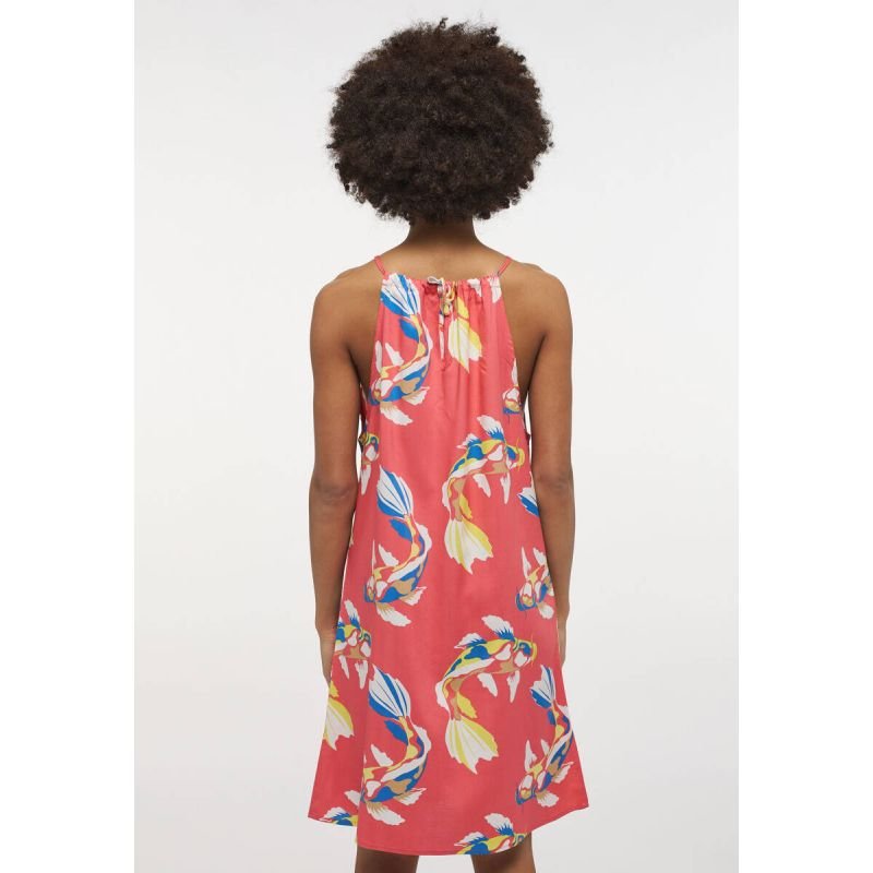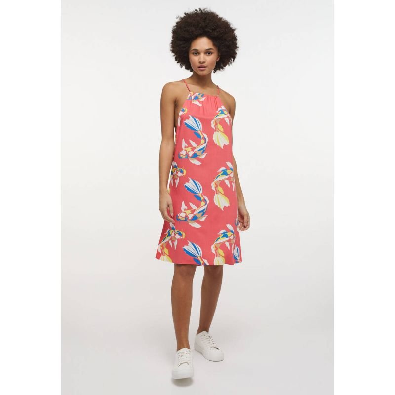 Properties: This summer dress from Mustang will be colorful. It has narrow, adjustable straps, a loose fit and a straight hem. Thanks to the soft synthetic fiber, the small hanger is airy, light and comfortable. Combined with sandals or sneakers, it’s a universal talent. The model is 173 cm tall and wears size 36 Cut: A-line, width varying towards the hem. Casual cut Soft viscose Light gathering at the neckline Patterned design The flared part of the skirt Material: 100% viscose