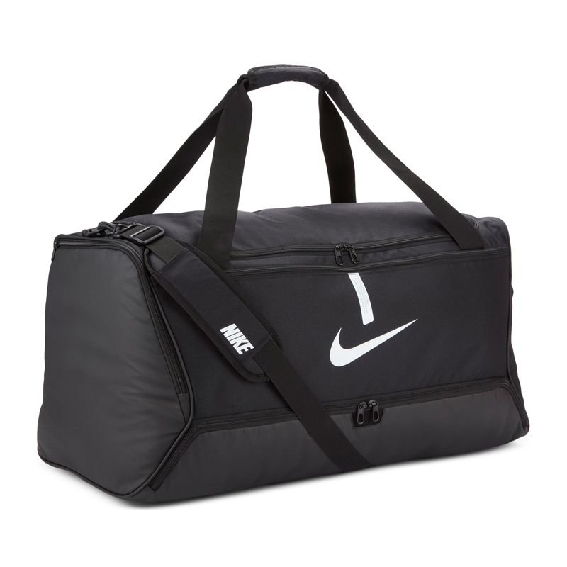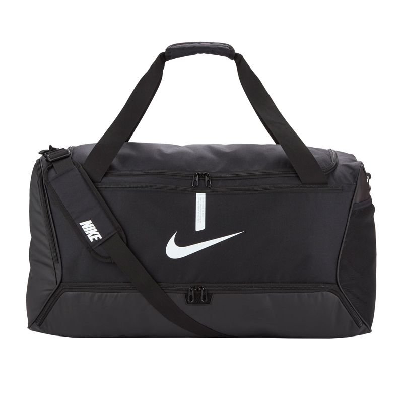 Nike Academy Team Large * the main compartment is exceptionally spacious * versatile handles and straps allow for comfortable carrying of equipment * thanks to the zippered compartment for dry and wet clothes at the bottom of the bag, your equipment stays dry and properly organized * a small inner pocket and a zippered outer pocket allow you to store small items * composition: 100% polyester * size: L * dimensions: 71 cm (length) × 36 cm (width) × 36 cm (height) * color: black The Nike Academy Team Bag features a durable design that helps keep you organized. Dedicated compartments provide space for your ball, cleats, and gear, while multiple straps allow you to carry your gear on the way to the pitch. The large main compartment offers enough space to hold a ball and other items. The zippered wet/dry compartment at the bottom of the bag keeps your gear dry and organized. Hand grips and shoulder straps allow you to comfortably carry your equipment. A small inner pocket and a zippered outer pocket allow you to store small items.