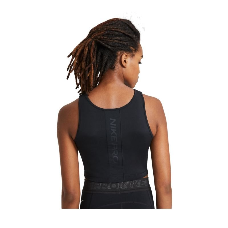 Nike WMNS Pro Crop Top Properties: women’s training crop top mesh insert on the back ensures breathability made in DRI-FIT technology / releasing sweat outside built-in half bra composition: 78% polyester / 22% elastane color: black The Nike Pro Tank Top wicks sweat to help keep you dry and cool during your most intense workouts and competitions. The stretchy design with mesh panels is made from at least 50% recycled polyester, providing comfort and freedom of movement throughout your workout. A mesh waistband enhances breathability in high-heat areas, helping you stay cool as your workout heats up. A built-in half bra provides support and a soft feel. The high neckline provides coverage while bending and stretching, and the cropped length prevents bunching at the bottom of the tank.