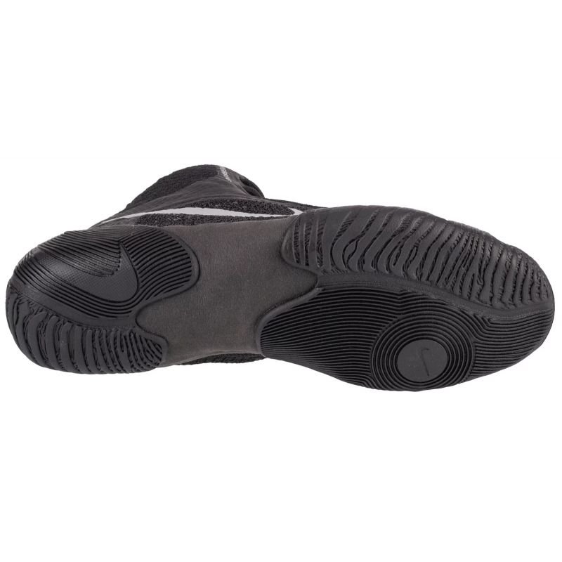 Properties: men’s Nike shoes for combat sports: Boxing, MMA, Wrestling high, lace-up model rubber sole Material: synthetic, fabric Color: black
