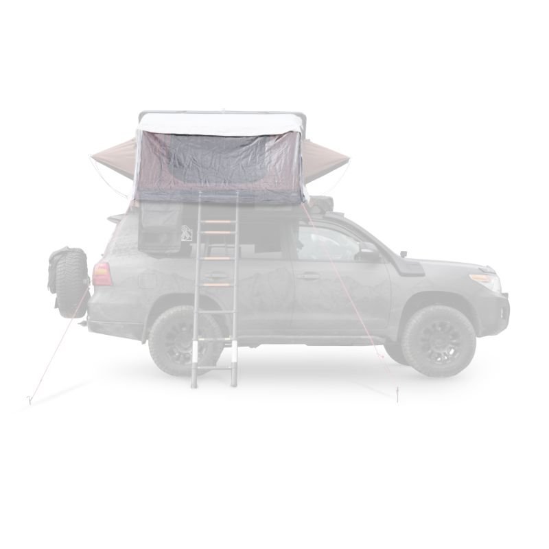 Properties: A roof tent canopy is a great way to use the space around your car. Solid, waterproof (PU 2000 mm) it will provide you with a bit of shade on a hot afternoon, as well as a dry surface where you can prepare breakfast on a rainy morning. You can tailor them exactly to your needs. Thanks to the telescopic posts, you can easily adjust the height of the canopy to ensure 100% comfort. The aluminum posts are lightweight and very easy to adjust. TECHNICAL DATA: Installation method: attached to the tent using a zipper and Velcro Set includes: cover, 2 pegs, 2 guy lines Color: colorless Material: plastic