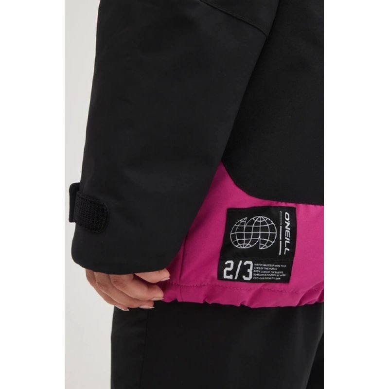 Properties: The O’Neill Tanzanite women’s jacket is a stylish and practical option, perfect for winter activities. It is characterized by high-quality materials that provide protection against cold and moisture. Super Stretch Fabric is a material often designed to withstand the stresses of these activities while providing comfort, durability and a high level of stretch to support freedom of movement during physical activity. The Repreve Recycled Insulation used in the jacket is a material used in outdoor and sports clothing, providing effective thermal insulation. It is made from recycled materials, such as post-consumer plastic bottles, which reduces environmental waste and contributes to eco-friendly production. Filling weight: – body 80g insulation, – 60g insulation sleeve. The jacket is equipped with insulation and a waterproof coating, making it perfect for activities in the snow or in more difficult weather conditions. O’Neill Hyperdry is a proprietary technology developed by O’Neill for use in apparel and outerwear. It is designed to enhance the performance of fabrics by making them waterproof while maintaining breathability and softness. Durable Water Repellent (DWR) is a specialized finish applied to fabrics to make them resistant to water penetration while maintaining breathability. It is commonly used in outdoor and sportswear, including jackets, trousers, and footwear. The jacket is water resistant thanks to sealed seams. Loose fit. – outer material 100% polyester with 20k coating with water resistance 20000mm and breathability 20000g/m2/24h – lining 100% polyester, filling 100% polyester. – hood with high collar, – fastened with a zipper, – snow belt with the option of attaching trousers, – two zippered side pockets, snap-fastened pockets on the chest, – elastic cuffs with Velcro adjustment and thumb hole, – ski pass pocket in the sleeve, – underarm ventilation adjustable with a zipper.